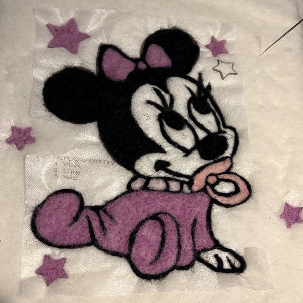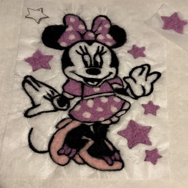 Stabilisatoren er kun til stede, mens man arbejder. Når den er opløst, er der ingen synlig bagside eller stivhed – kun det færdige motiv i filt eller broderi.